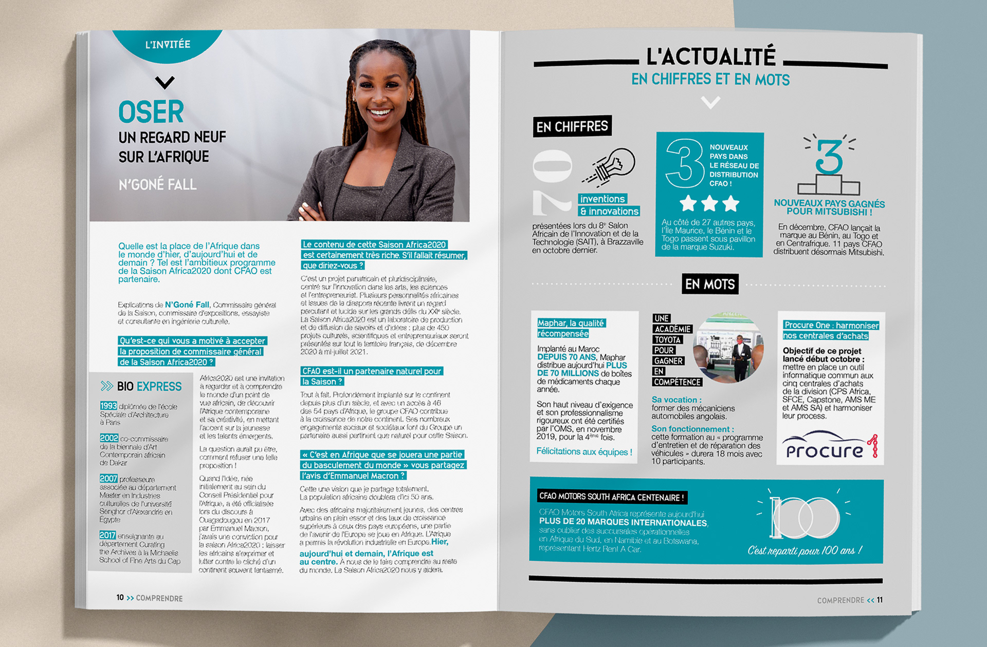 Refonte créative du magazine interne du groupe CFAO, afin de renforcer le sentiment de fierté et d'appartenance des collaborateurs du groupe.